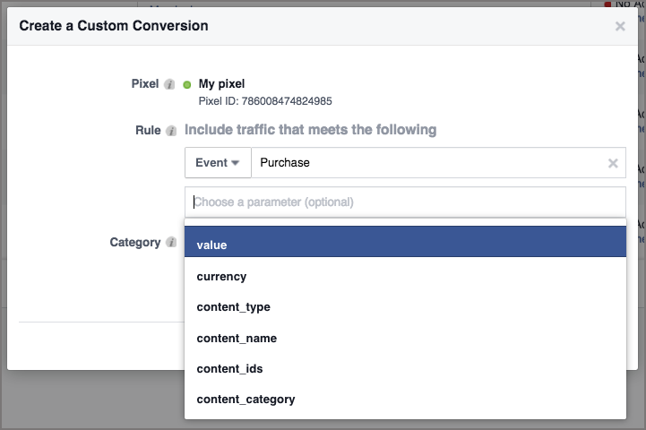 选择自定义转化事件的类别。